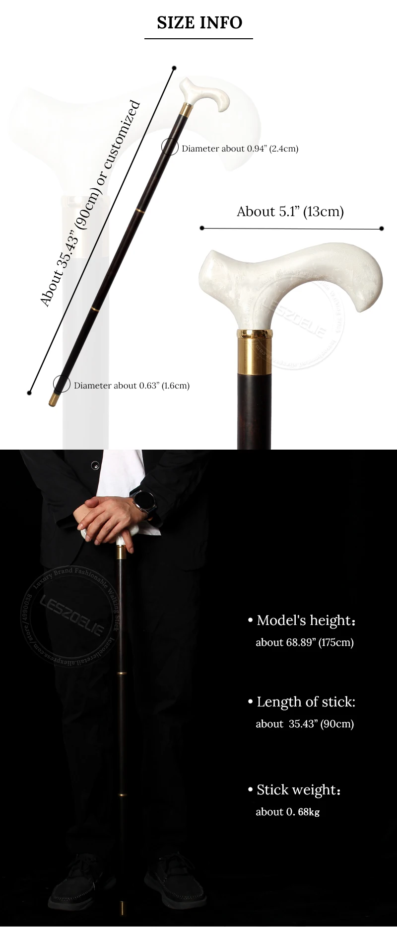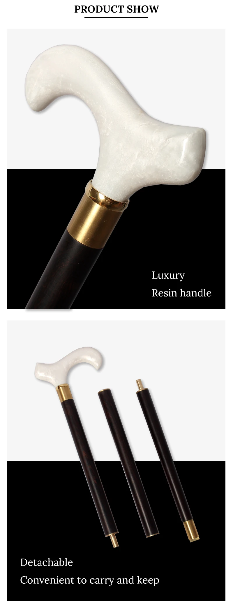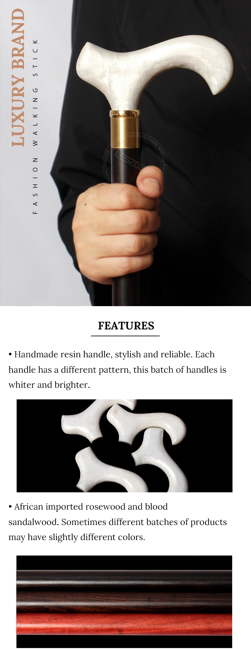Bengala de madeira africana com cabo de resina luxuosa masculina e feminina