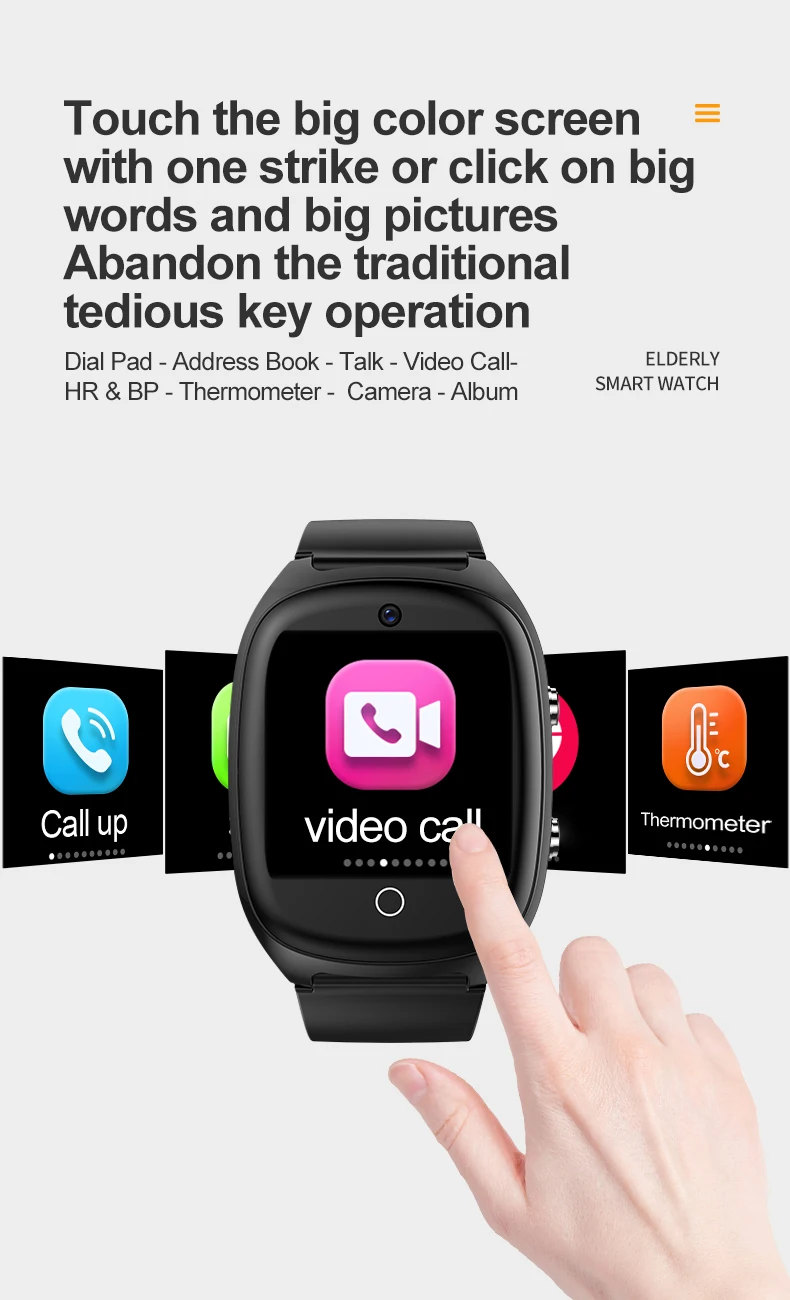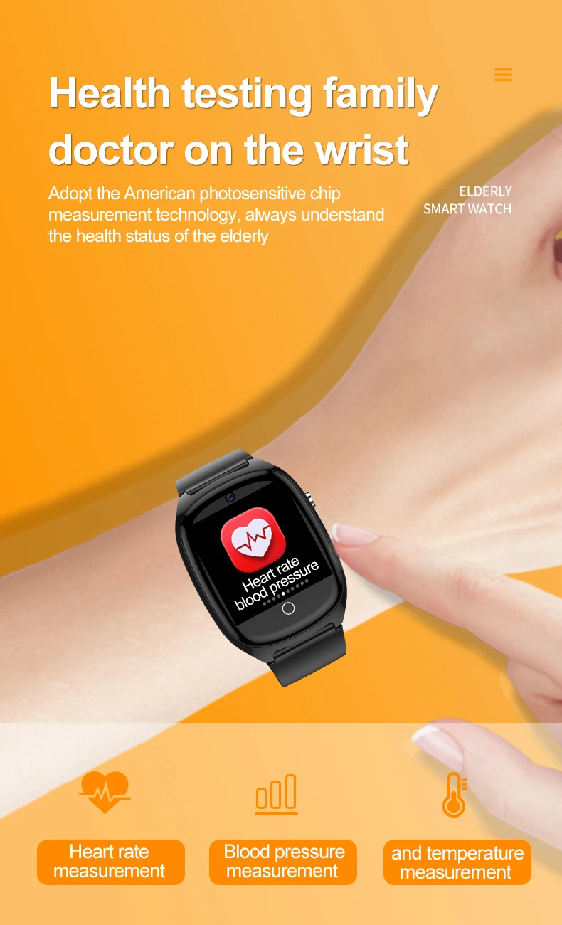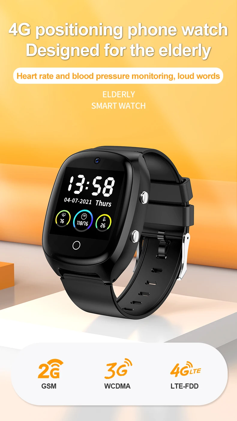 Idosos gps relógios inteligentes rastreador localizador - freqüência cardíaca pressão arterial queda alarme smartwatch para idosos