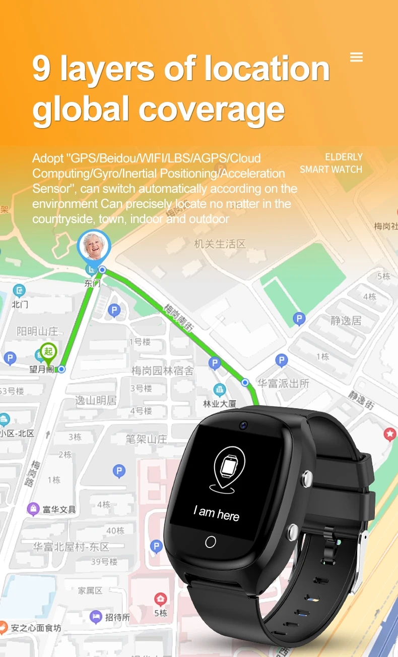 Relógios inteligente gps Anti-perda para idosos- Rastreador Localizador